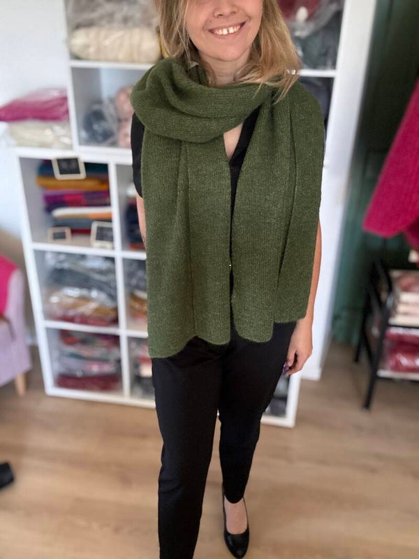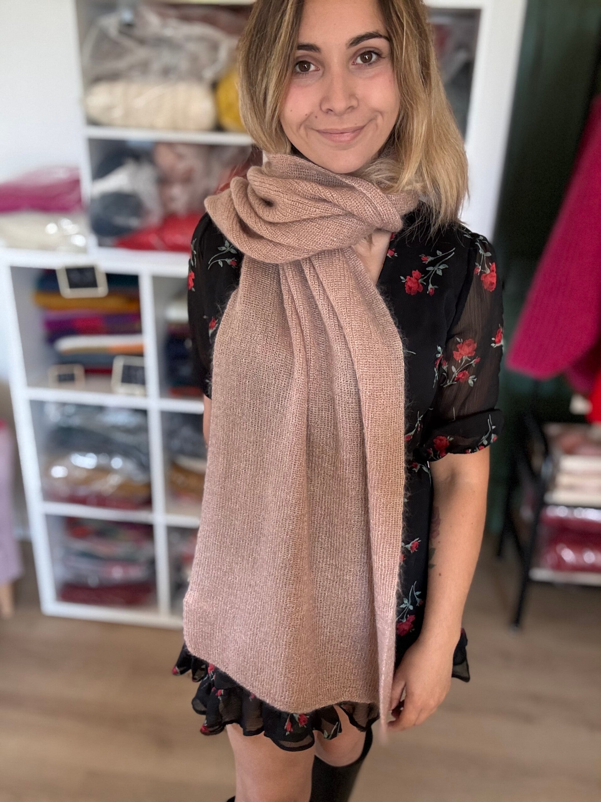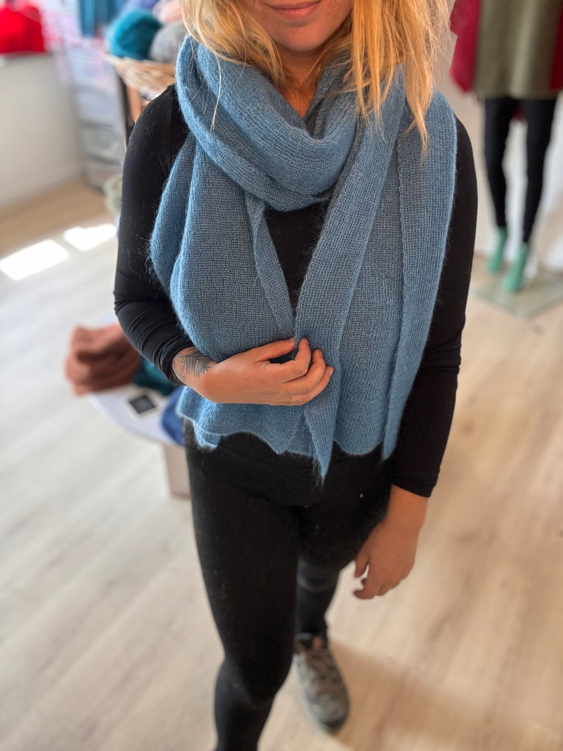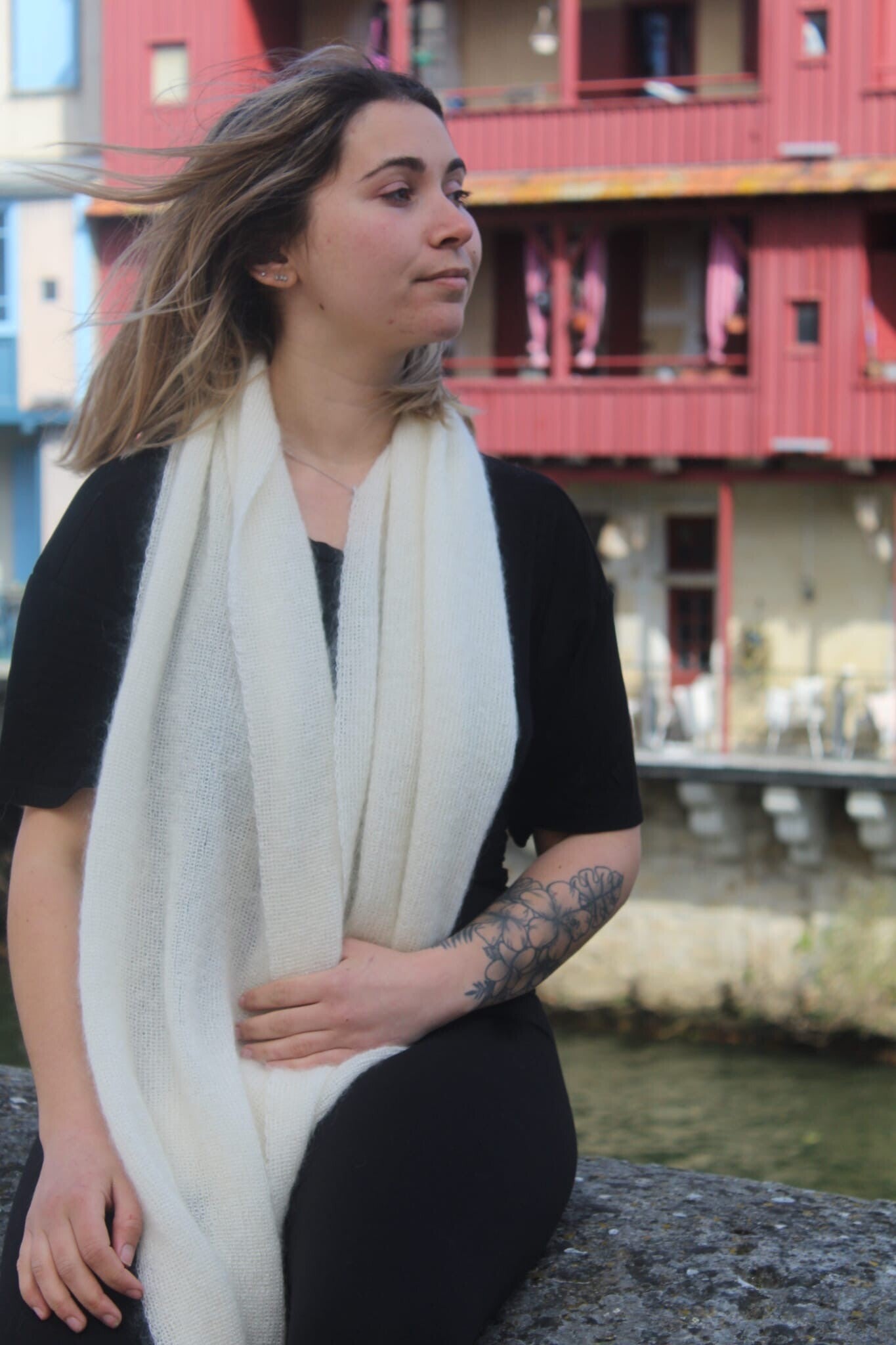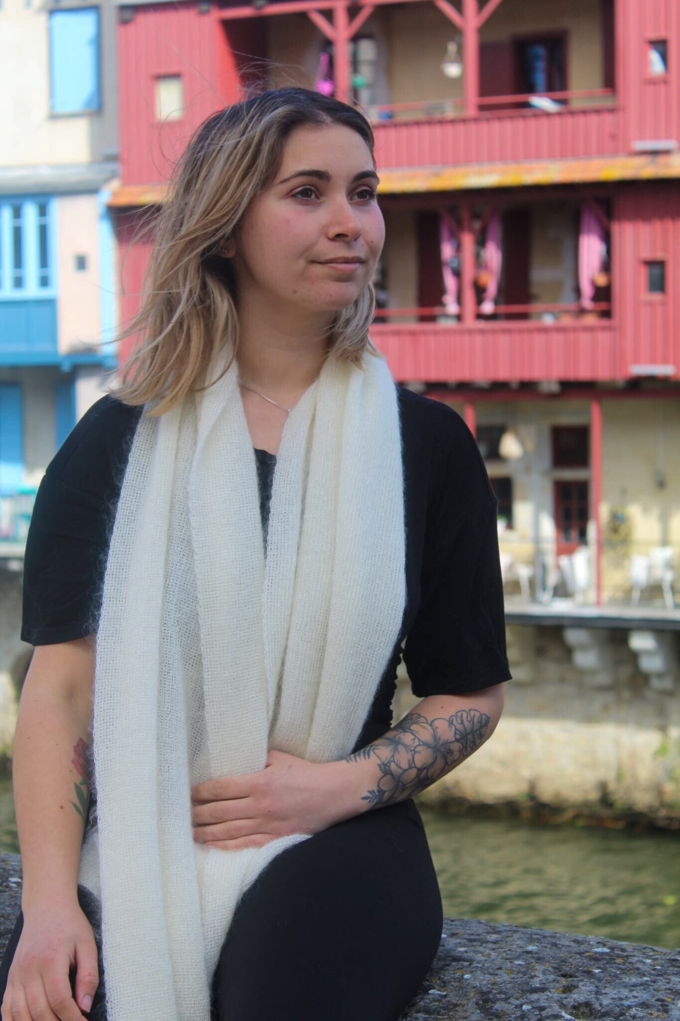 Écharpe tricotée en mohair français – douceur, chaleur et élégance 60 % mohair et 40 % soie