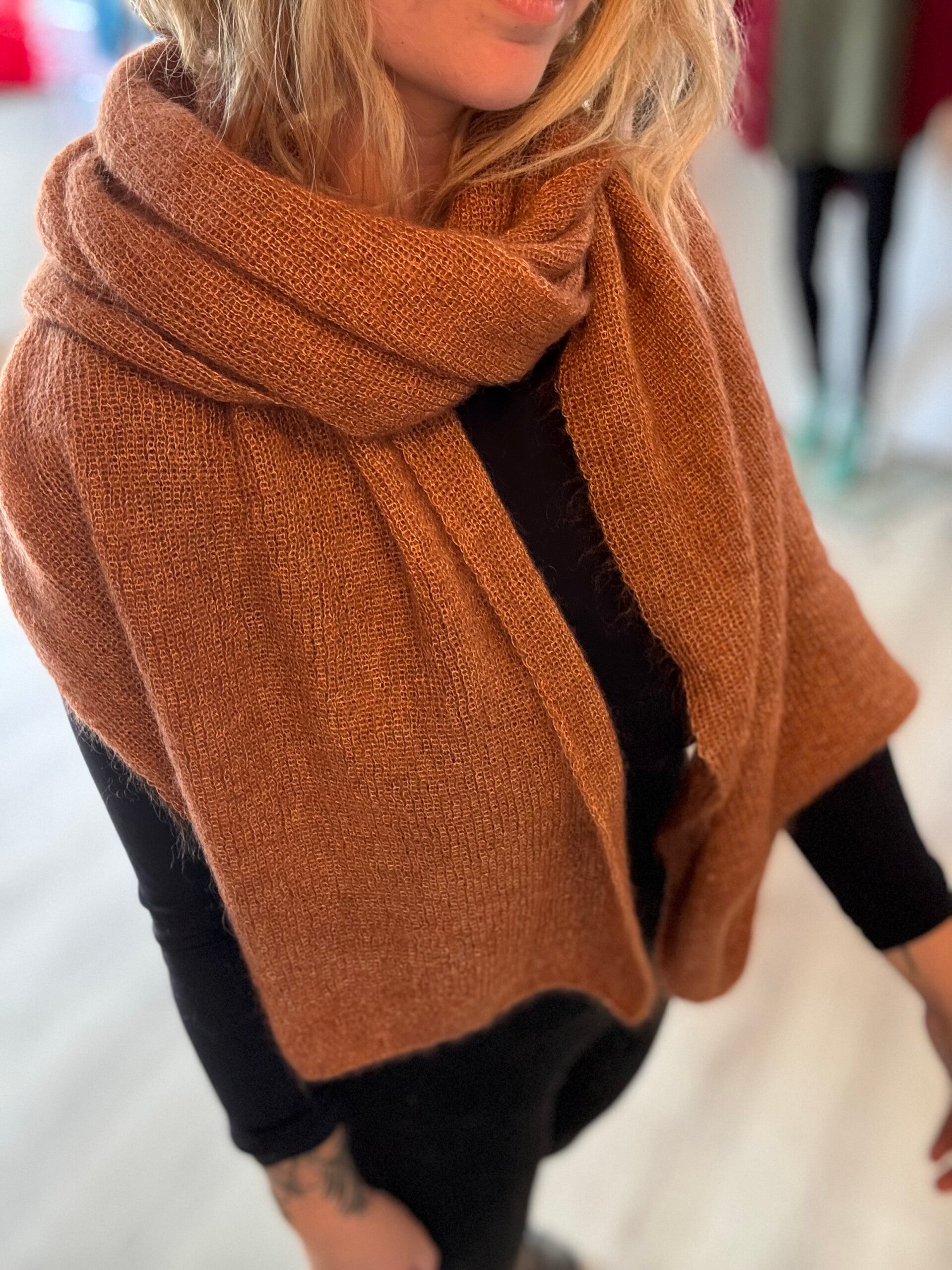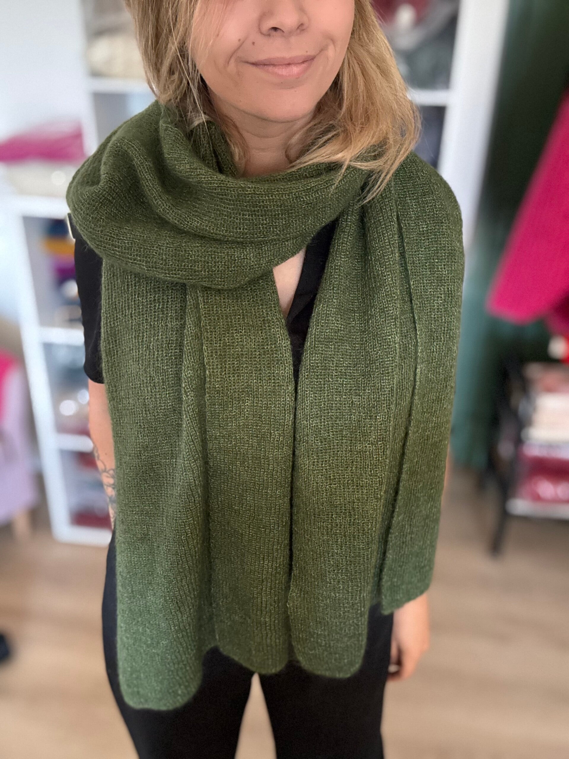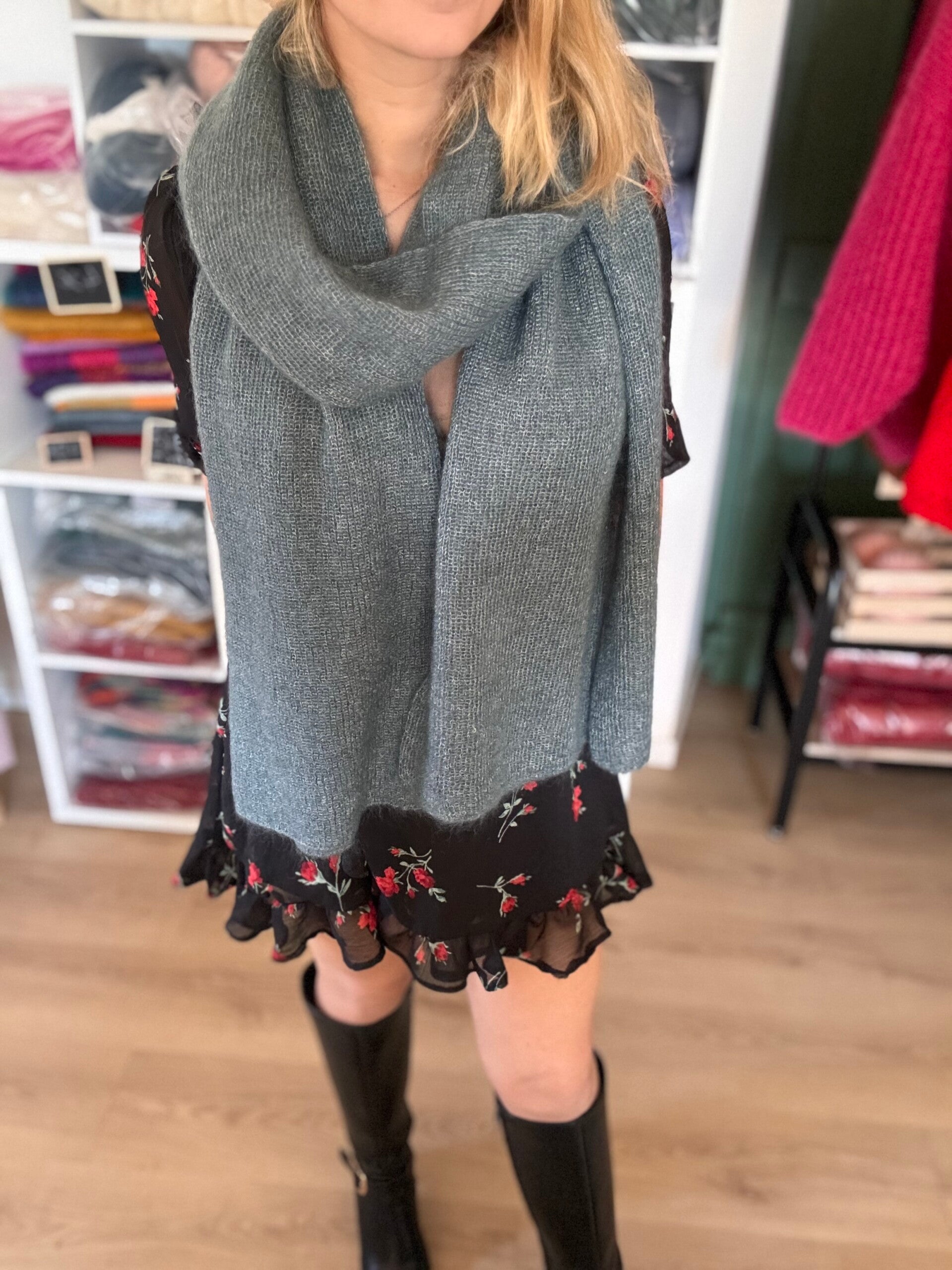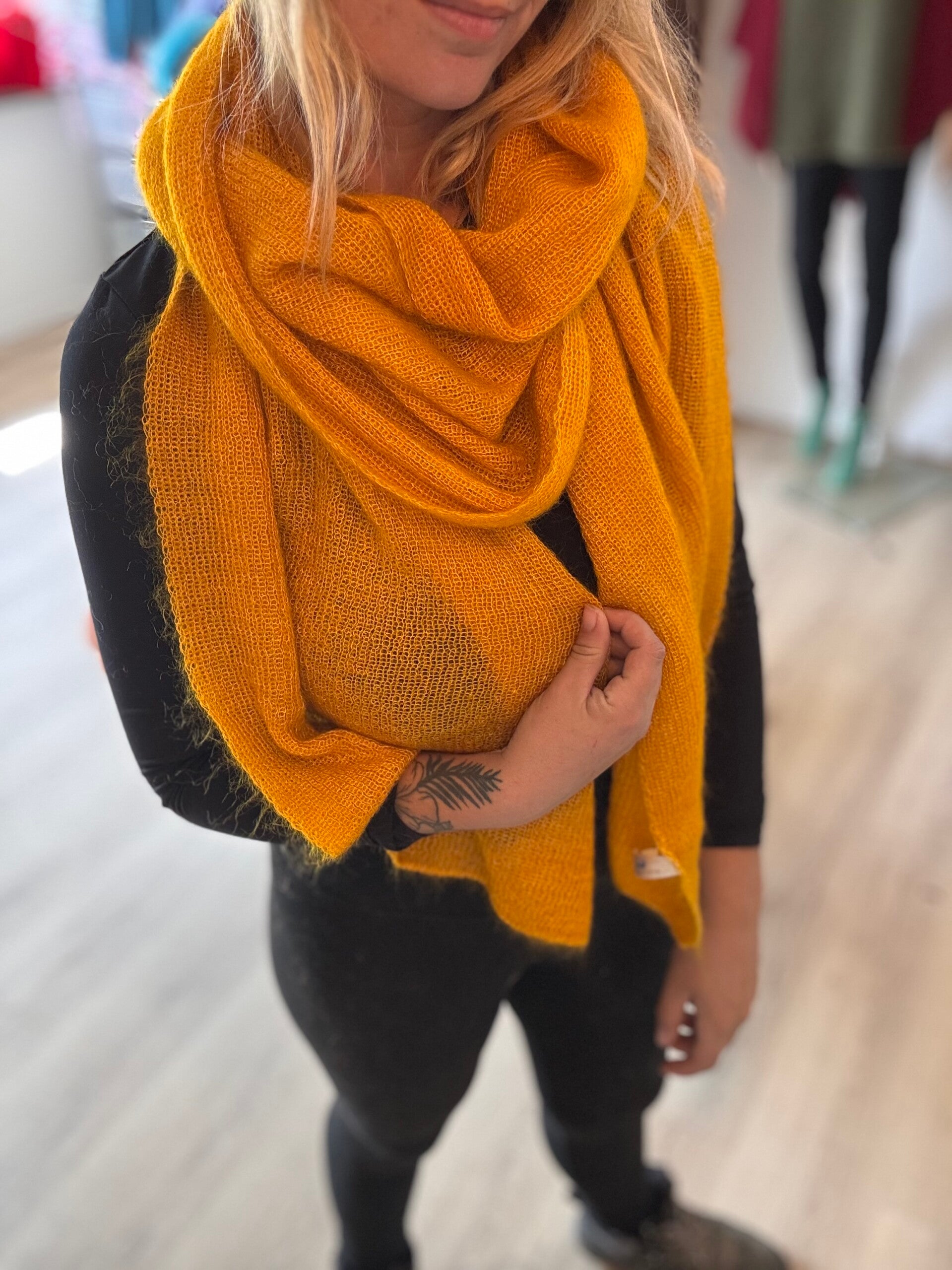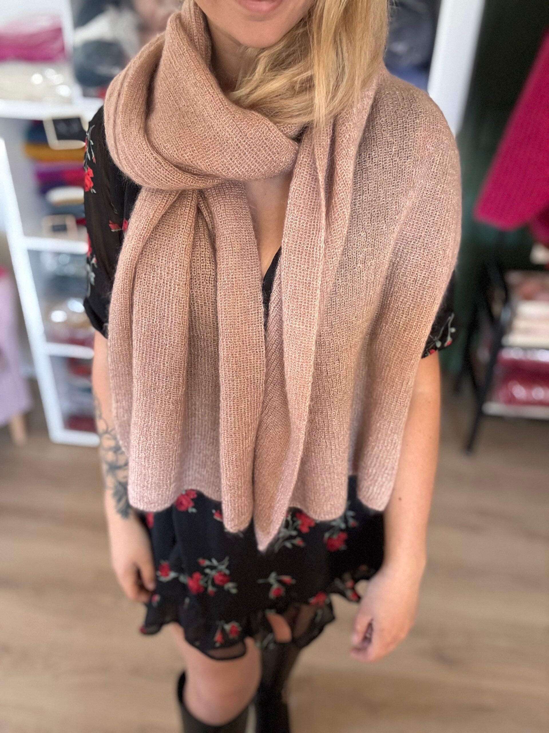 Écharpe tricotée en mohair français – douceur, chaleur et élégance 60 % mohair et 40 % soie