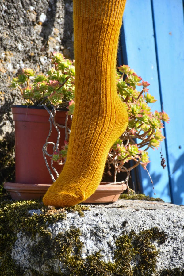 Fines et douces, ces chaussettes en mohair se portent facilement au quotidien. La fibre naturelle du mohair laisse le pied respirer et régule parfaitement la transpiration. Leurs hauteurs à mi mollet s’associeront autant aux chaussures de ville qu’aux chaussures de travail ou encore de sport.