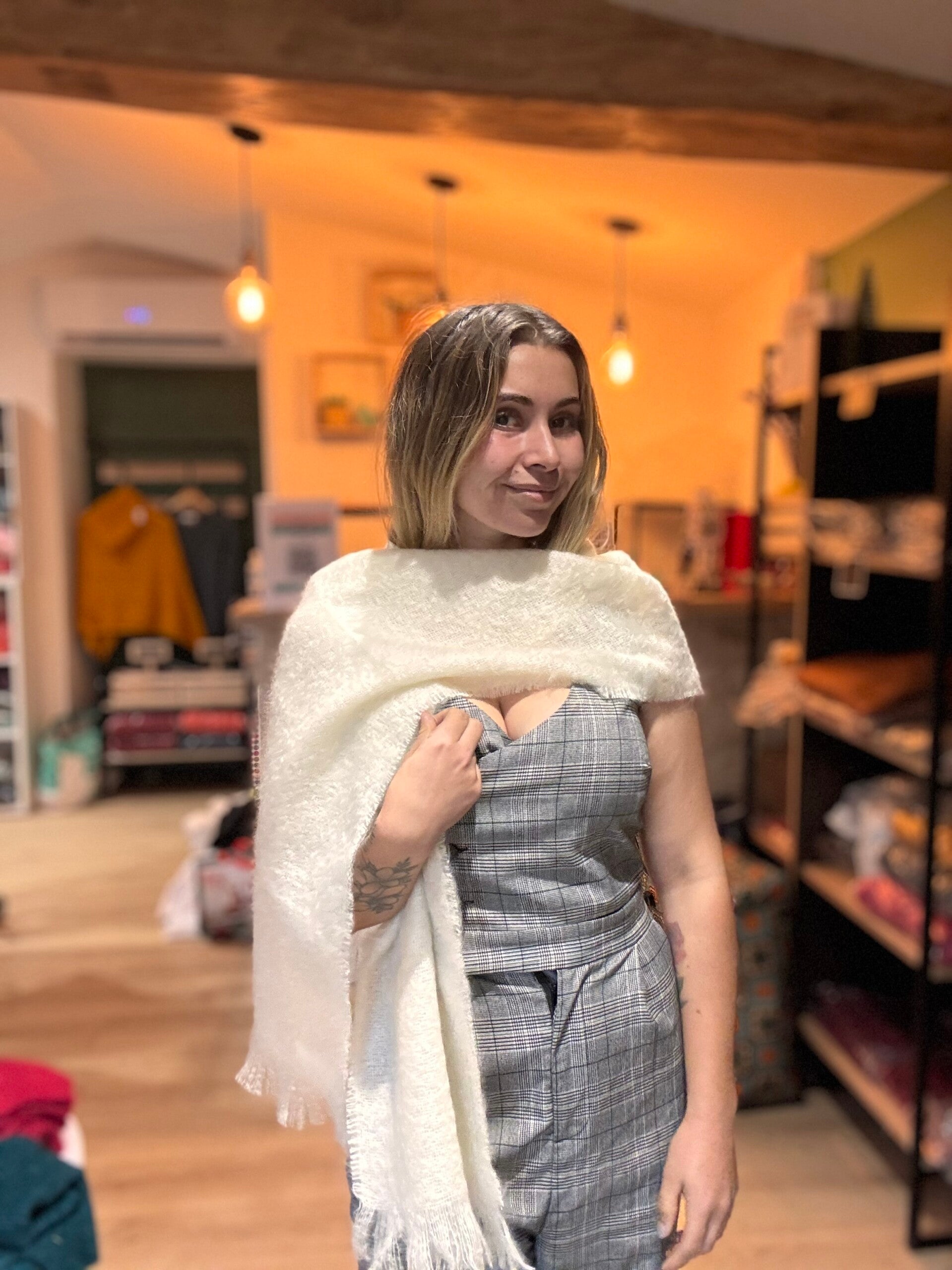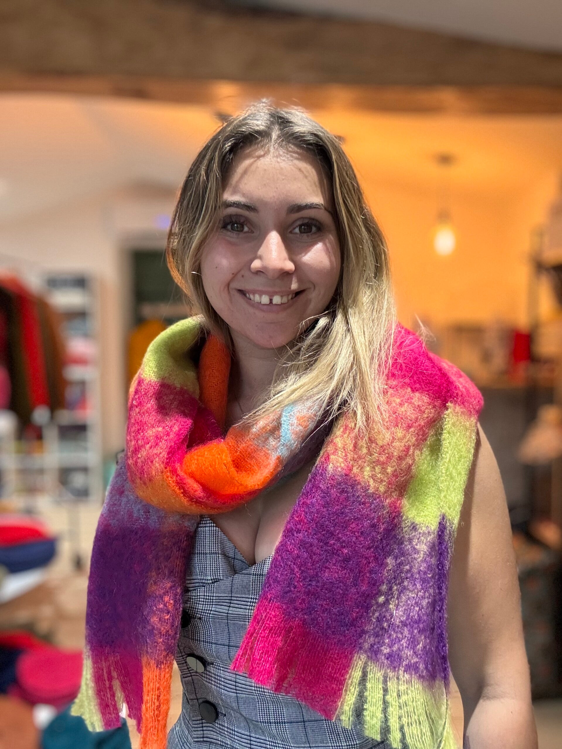 A la fois légère et douce, votre echarpe vous apportera une belle chaleur naturelle autour du cou, tout en vous laissant respirer. Délicate, agréable à porter à même la peau, la fibre de Mohair est aérienne et légère.