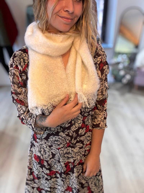 A la fois légère et douce, votre echarpe vous apportera une belle chaleur naturelle autour du cou, tout en vous laissant respirer. Délicate, agréable à porter à même la peau, la fibre de Mohair est aérienne et légère.