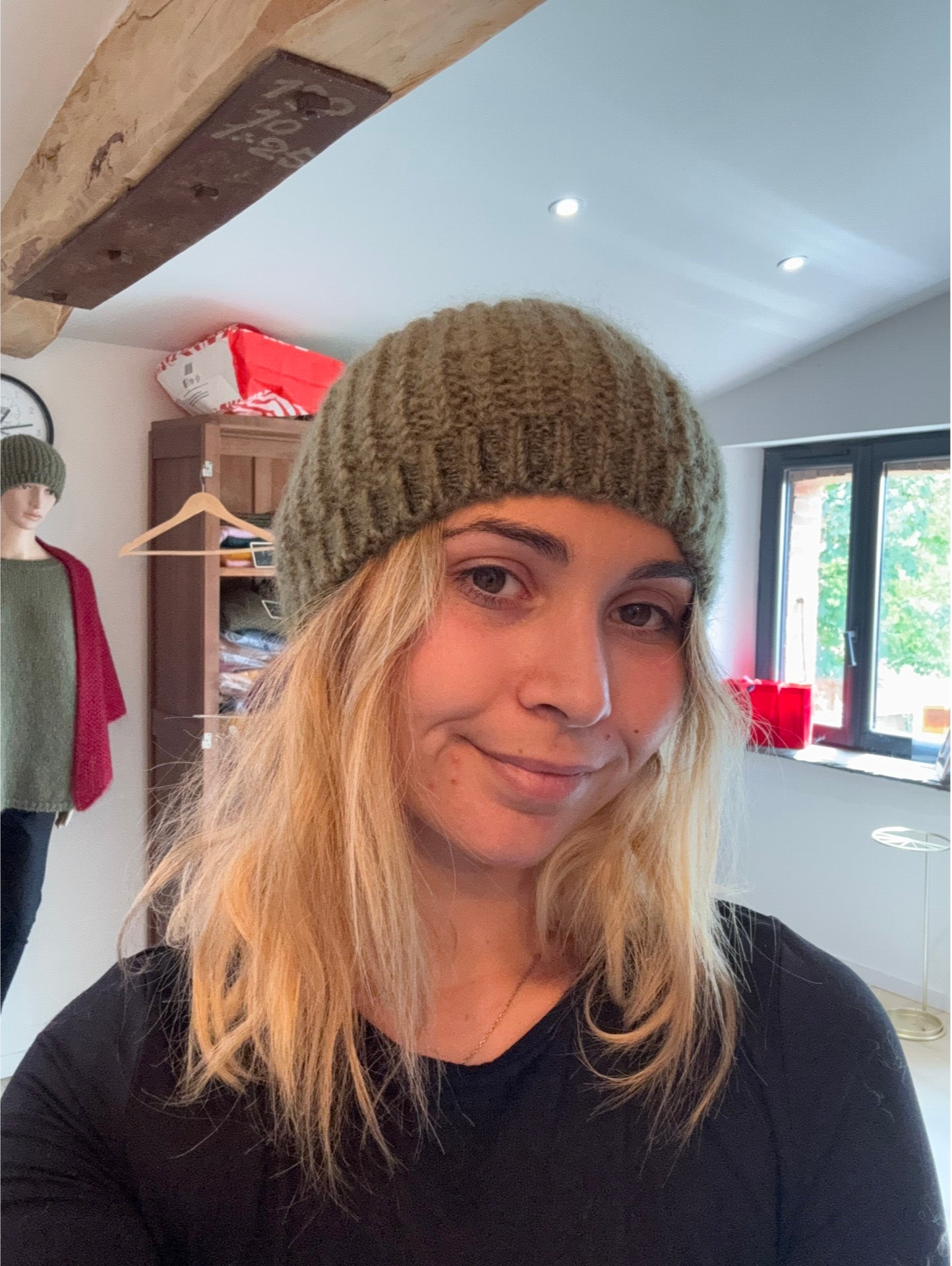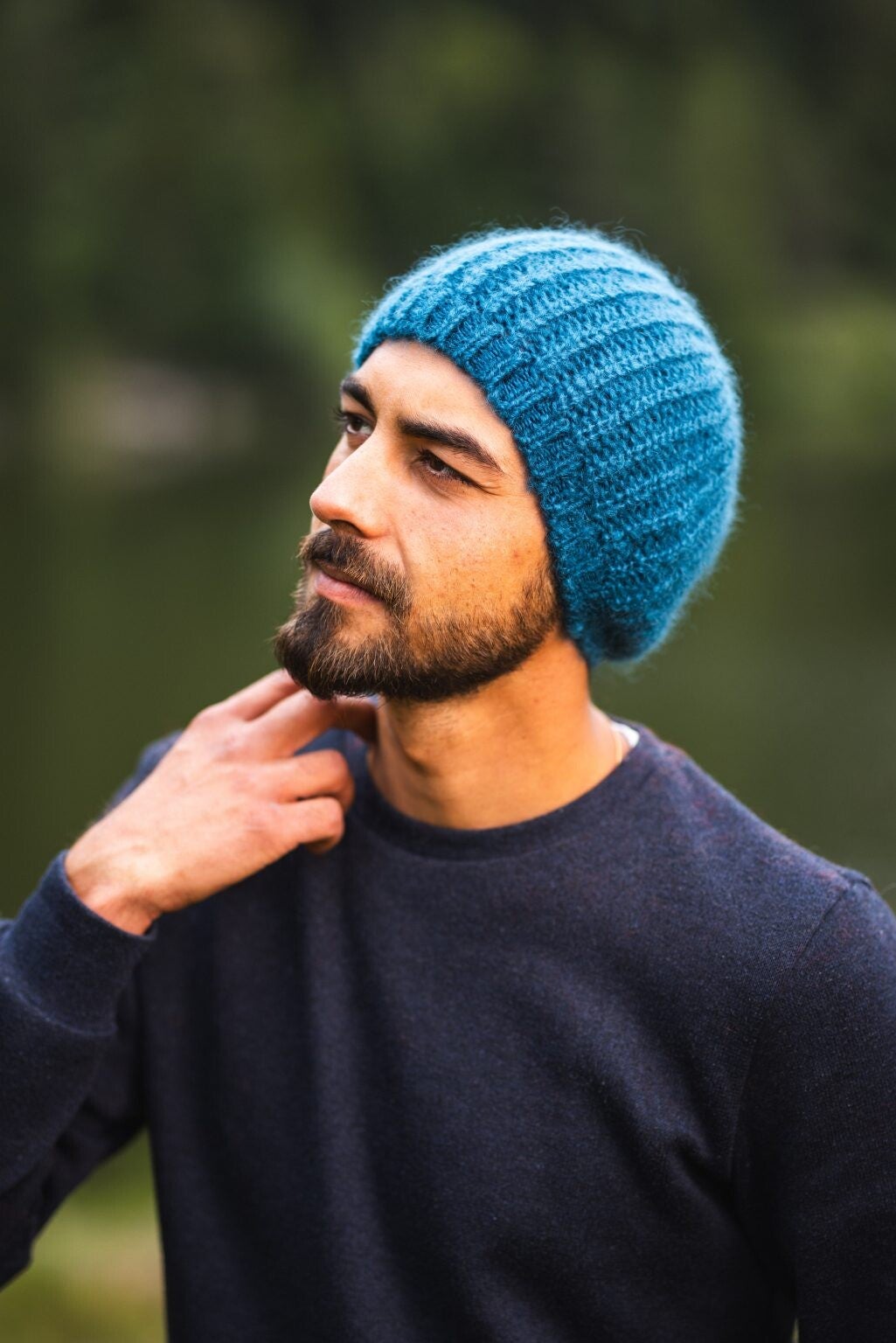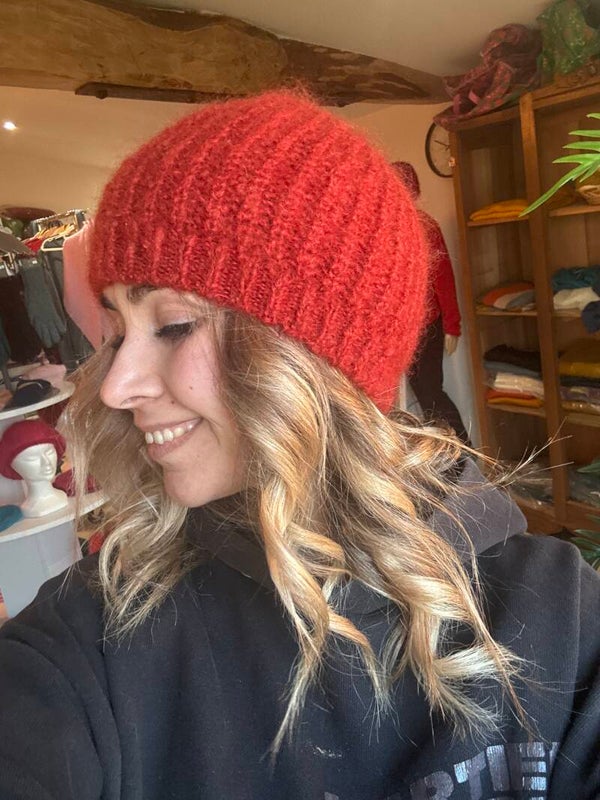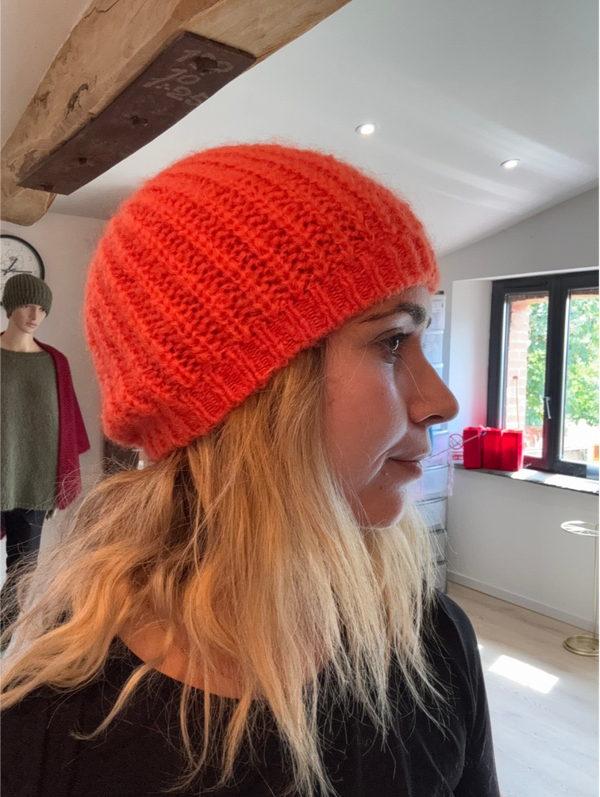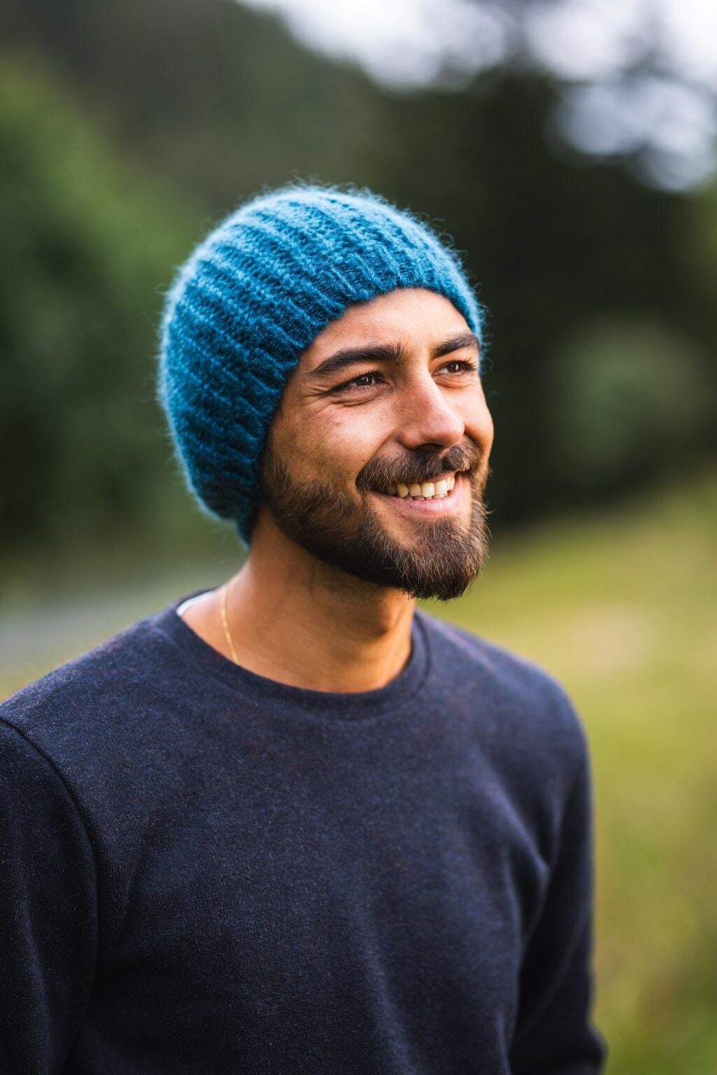 Protégez vous du froid grâce à ce petit bonnet en côtes tricoté en mohair de chevreau du mohair de gourjade.